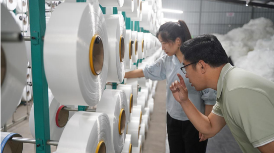 石家莊市七彩針織有限責任公司位于石家莊市元氏縣,一大早,廠房里的機器便開始轟鳴作響,純白的織品源源不斷地堆疊而下,另一處廠房則在染色。織品的銷售走向五花八門:做衣服內襯、做過濾布……